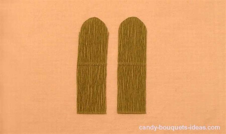 Сначала мы вырезаем из гофрированной бумаги несколько деталей. Их примерные размеры указаны на фото.