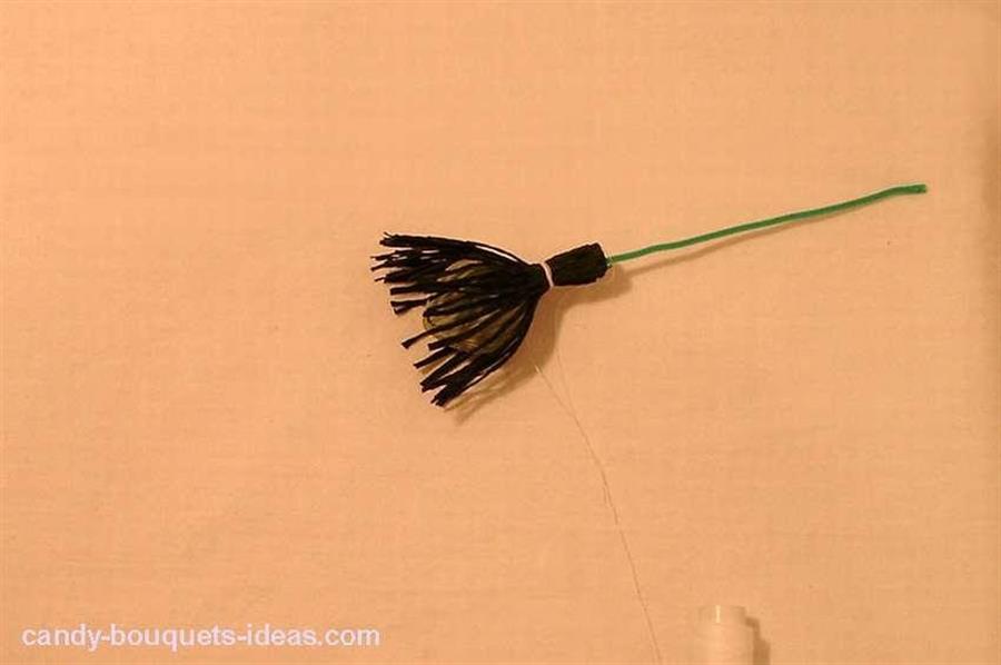 Один край чёрной детали нарезаем бахромой и немного вытягиваем в длину.