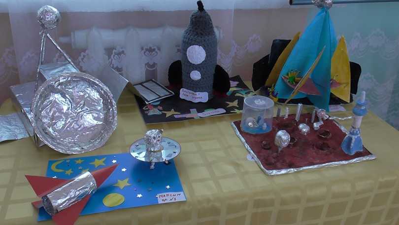 Ракета – одна из самых популярных поделок на тему Космос своими руками. Чтобы сделать ее в технике квиллинг, потребуются гофрированные полосочки, яйцо от Киндер-сюрприза, клей ПВА. Процесс изготовления поделки с детьми из бумаги таков:
