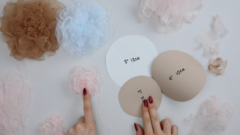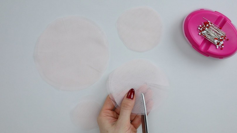 Уменьшаем выкройку по периметру на 5 мм и повторяем процедуру. Затем ещё раз уменьшаем выкройку и выкраиваем лепестки. Всего у нас получится три яруса лепестков.