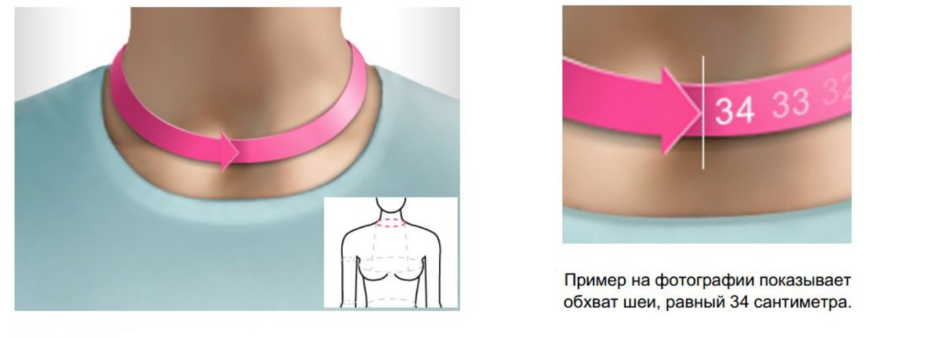 Описание на размеры для окружности по линии шеи – 40(44,5, 49) см.