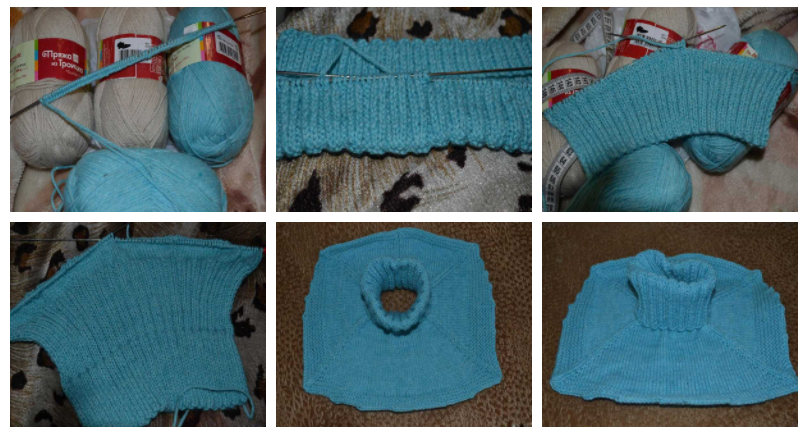 Вязание соединяется в кольцо. Заданная на начальном этапе резинка осуществляется на протяжении 36 рядов. Горловина готова.