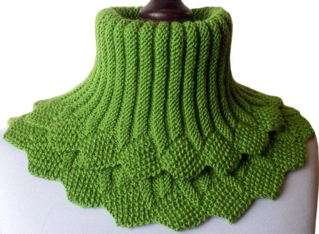Для мерок потребуется измерить высоту шеи, и умножить показатель на 2. Эта манишка будет с небольшой сборочкой, да и в морозы в неё можно будет хорошо спрятаться. Вторая мерка для такого изделия — это длина от нижней части резинки до требуемого разветвления полотна. Изделие не должно топорщиться, ещё дополнительно измеряют окружность плеч, и провязывается круг не до конца, а оставляют небольшой сектор, чтобы по низу модель была приталенной.