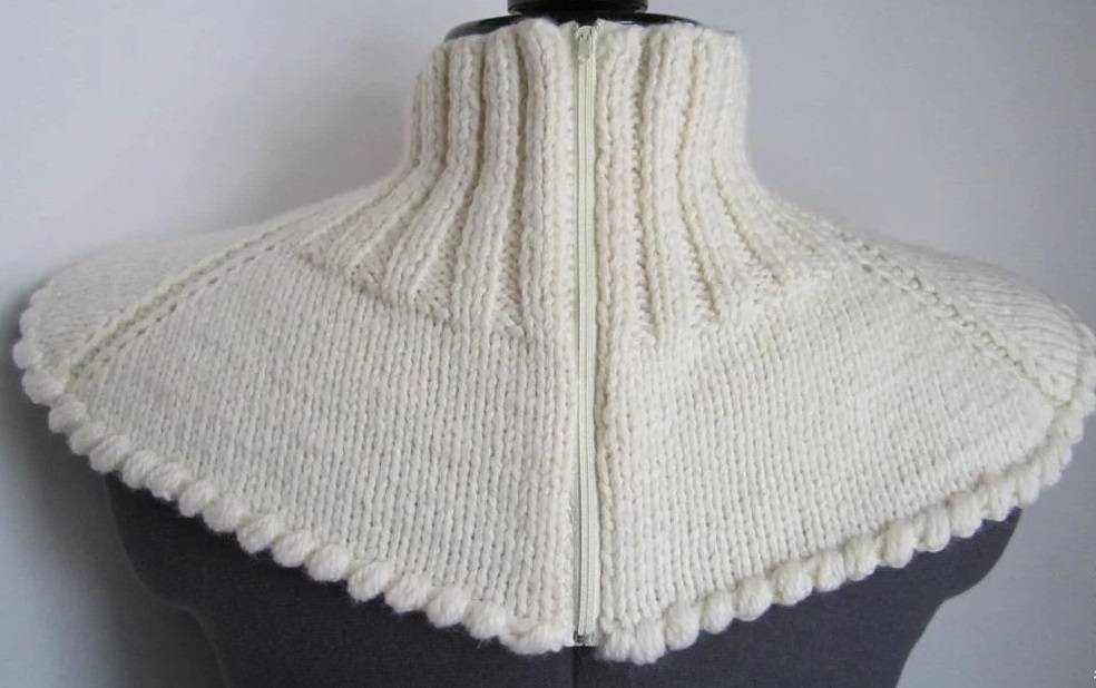 - Классическая манишка состоит из горловины (воротник) и оплечья (вязаное полотно вдоль линии шеи)