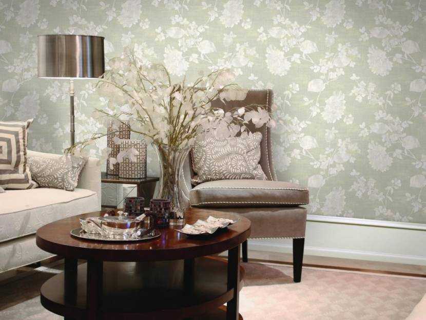 - Дамаск. Расположенные симметрично плавные цветочно-растительные мотивы известны с раннего Средневековья и символизируют роскошь и безупречный вкус хозяев дома. Дамасский узор встречается в классических интерьерах (барокко, неоклассика, ампир), в том числе в английском стиле.