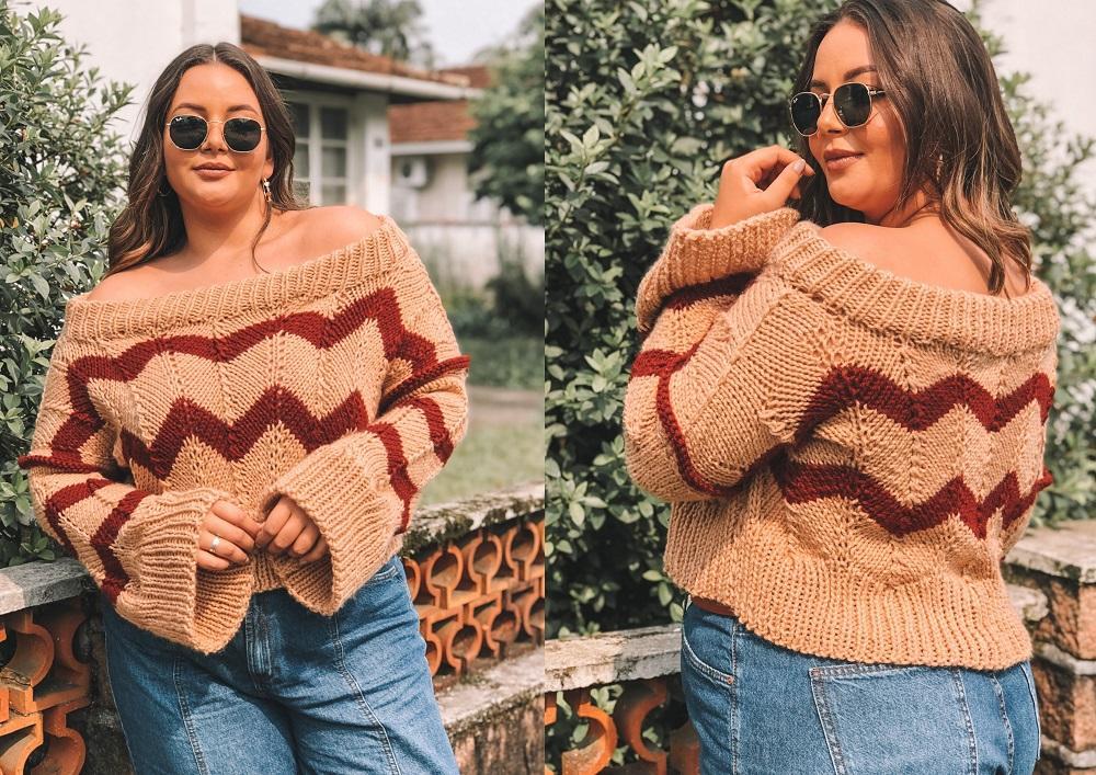 Для вязаных моделей размера плюс важно правильно подбирать пряжу и узор. Чем толще вы берёте спицы для вязания, тем фактурнее получится ваше изделие