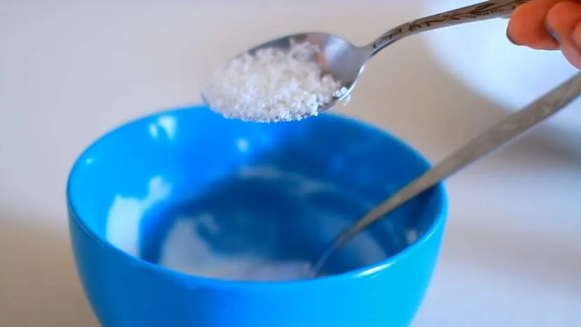 - Клей и 100 г воды соединить в толстостенной или антипригарной кастрюле. Поставить на огонь средней величины и варить около 2 минут. Снять с плиты.