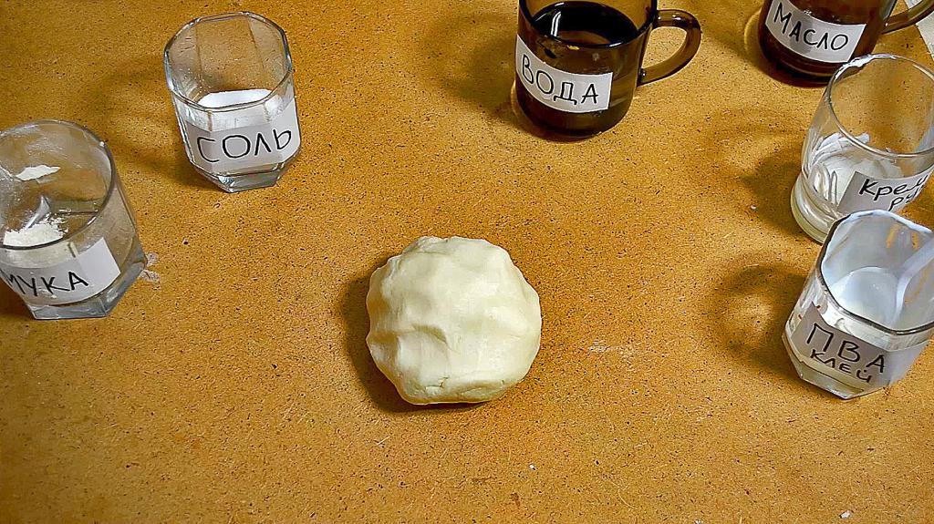 Приготовить такой материал можно самостоятельно, используя муку, соль и воду. Самое главное – тесто является экологически чистым веществом. Единственные его недостатки – долгое время высыхания (более 10 ч) и размокание под действием воды.