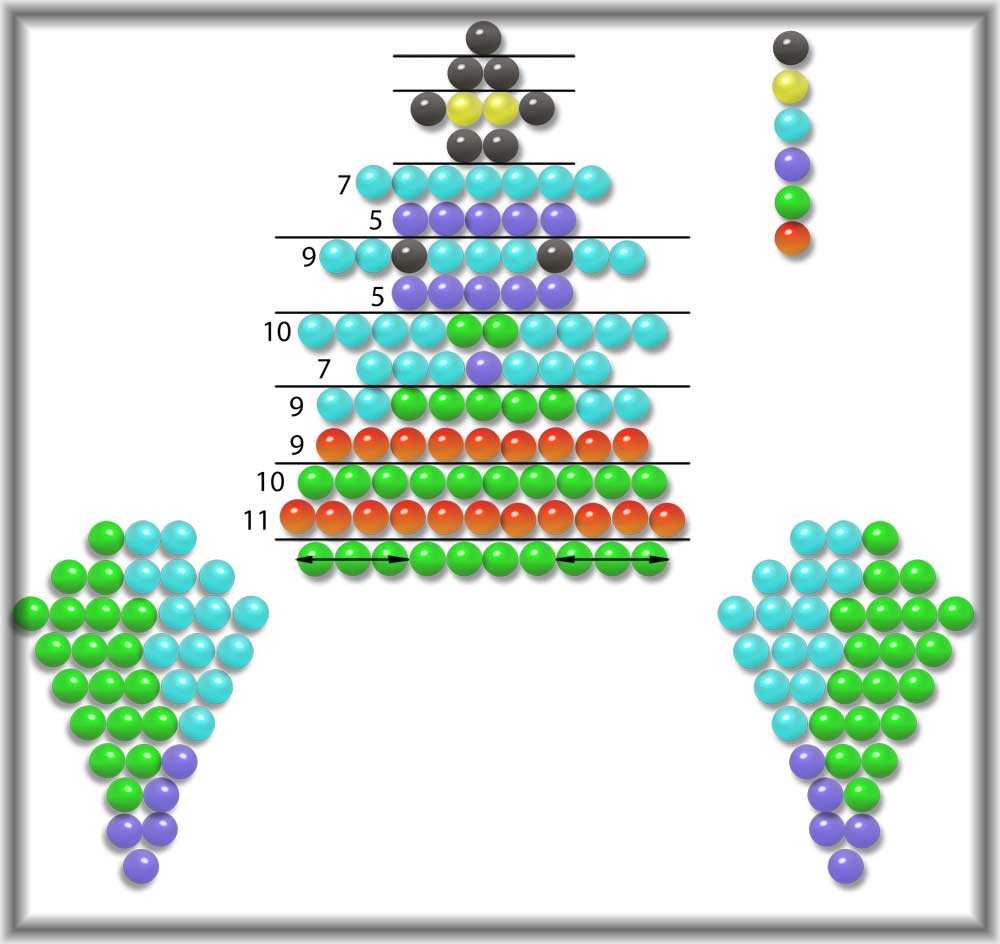 5 ряд: 3 синие бисеринки, 2 жёлтые и ещё 3 синие.
