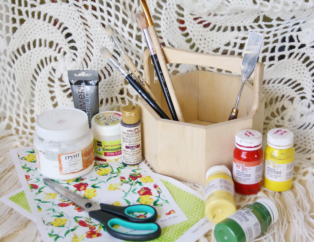 Имеет составные части – наклеенное изображение и нарисованный фон с применением разных техник рисования. Получается как ручная роспись. Используется, когда картинка не занимает всю площадь предмета. Это наиболее сложный, и в то же время самый красивый вид прикладного искусства.