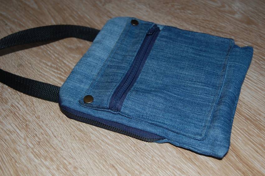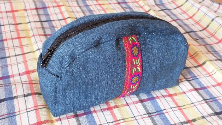 Новая джинсовая косметичка готова. Хоть внешне она и небольшая, но довольно вместительная – в нее легко поместится вся косметика, которая может понадобиться вам в течение дня, да еще и место останется.