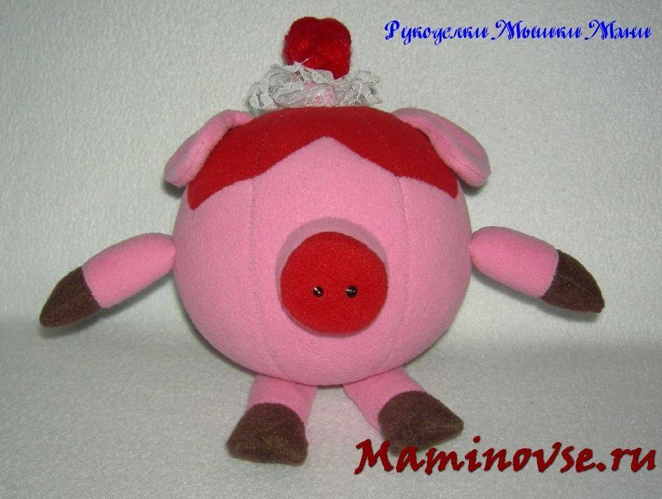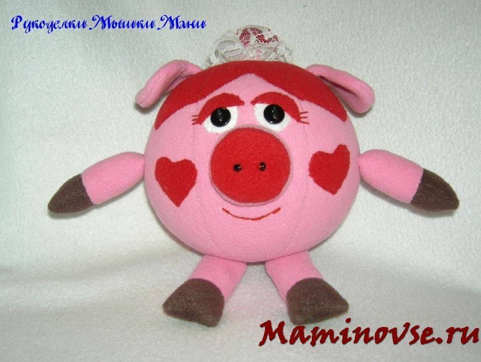 Осталось навести румянец нашей кокетке. Из красного флиса вырезаем сердечки и пришиваем их на мордочку.
