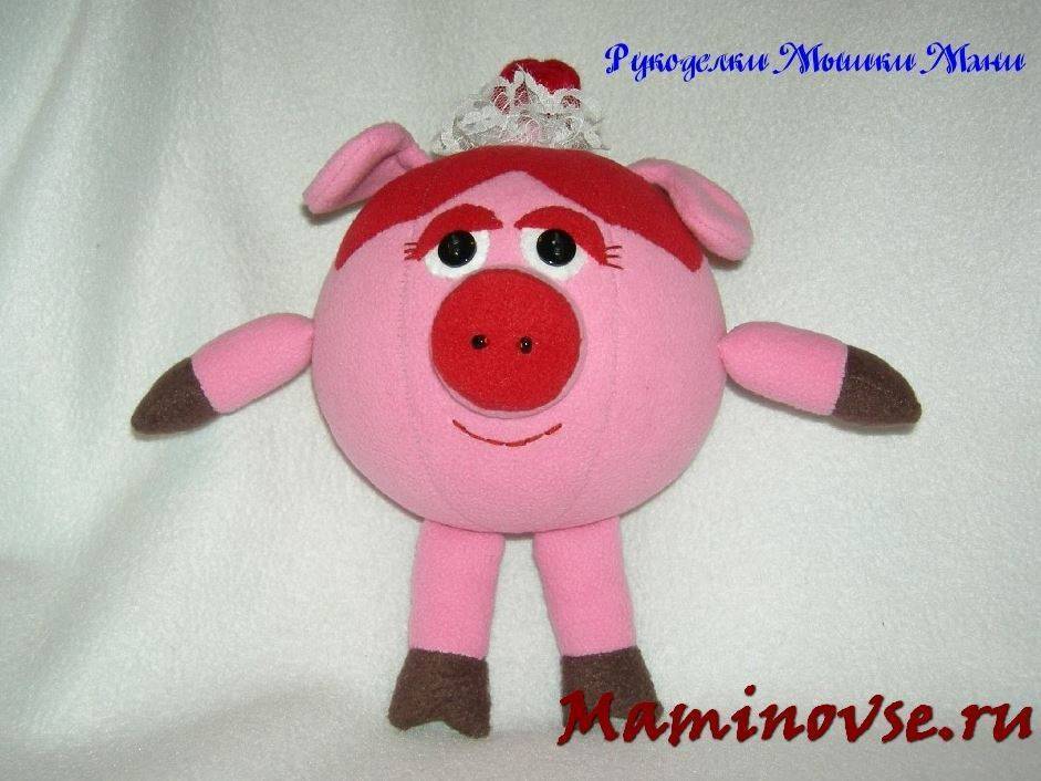 Для Нюши нужно обязательно сшить или связать её любимца – Тузю. Для пёсика можно прорисовать выкройку самостоятельно – она совершенно простая. Выполняется Тузя в бежево – коричневых тонах. И не забудьте про буквы на пузике! Детали игрушки – см. фото.