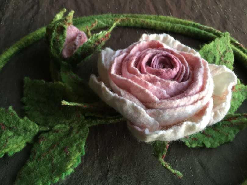 Розочка из фетра выглядит настолько реалистично и нежно, что многие позавидуют такому украшению.