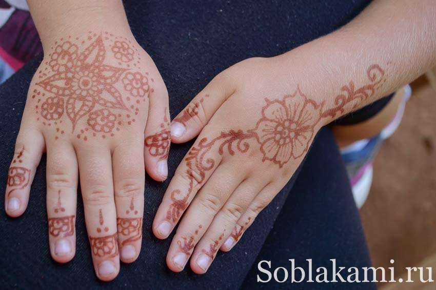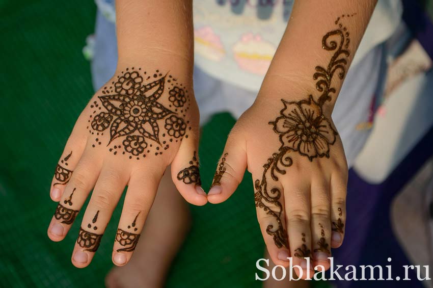 Сохнуть такой рисунок будет от 6 до 8 часов. После полной просушки пасту аккуратно снимают тампоном, смоченным лимонным соком. Мыть украшенную часть тела после этого рекомендуется как можно реже.