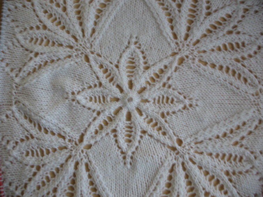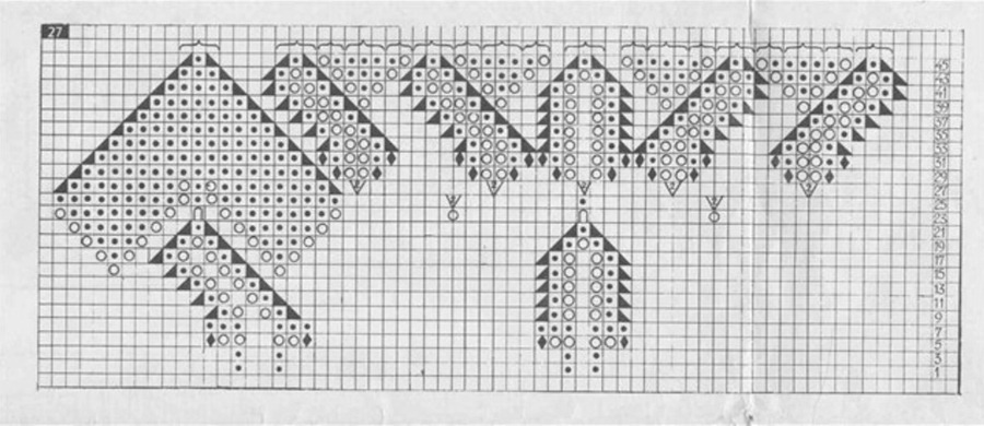 Таким образом вяжут до 46 ряда. Если рисунок получился достаточного размера – работу можно заканчивать, если необходимо еще – вязание продолжается.