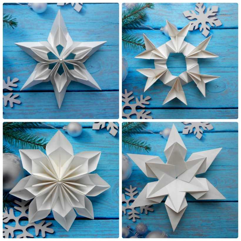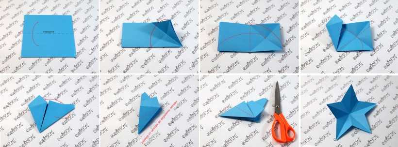 Немного прорежьте складки по бокам квадрата. Согните вырез по углам и приклейте к спинке. Получится звездочка с четырьмя концами.