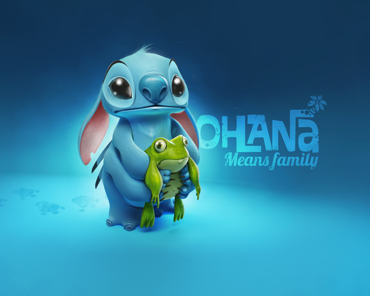 Светло-синее существо по имени Стич держит сердце