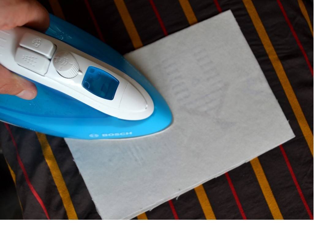Вырезаем из флизелина прямоугольник равный размеру основы. Так же вырезаем из ткани прямоугольник, но прибавляем на подгибку 1,5 см. И приклеиваем флизелин по центру с помощью утюга
