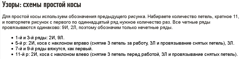 косы. Создаются по довольно простой схеме. Для их формирования достаточно просто перемещать петли вправо или же влево;