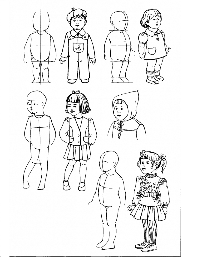 Процесс изображения человека во весь рост можно разделить на несколько этапов.