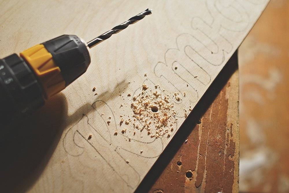 С помощью копировальной бумаги можно быстро и просто сделать шаблон на доске — перенести слова на фанеру. Этот способ очень прост в применении и не требует особых усилий, поскольку в интернете есть множество других вариантов, как перенести надпись на дерево, и большая их часть редко получается у новичков. Итак, после того, как вы перевели надпись, необходимо просверлить несколько дыр в буквах, имеющих внутреннюю полость. Они понадобятся для того, чтобы лобзиком (или выбранным вами инструментом) можно было без затруднений вырезать внутреннюю часть букв