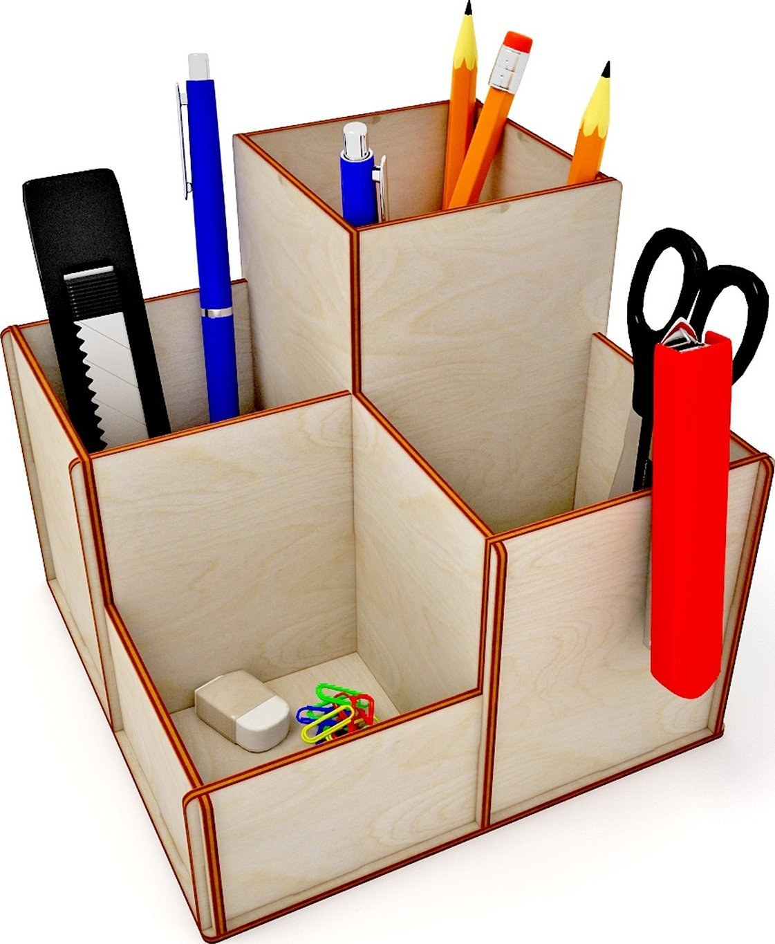 Канцелярия и прочая мелочь хорошо умещаются в деревянных органайзерах