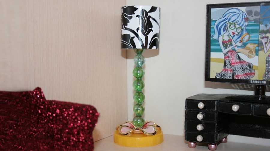 Простой каркас обтягивают красивой и подходящей к интерьеру тканью, приклеив ее силиконовым клеем. Хорошо смотрится гофрированная декоративная бумага. Используются пластиковые бутылки и ложки, бисер. Любителям пэчворка и декупажа открываются горизонты практического применения этих техник. На фото представлены лампы сделанные своими руками.
