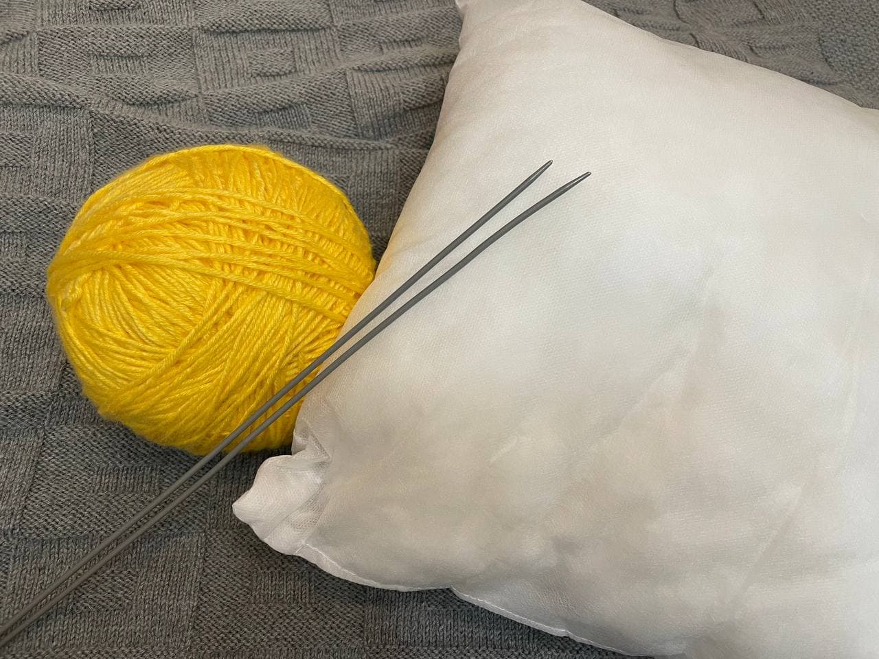 Лучше вязать чехол на подушку. Если набить синтепоном (или любым другим наполнителем) сразу вязаную наволочку, то ее нельзя будет стирать, то есть подушка станет практически одноразовой. Либо декоративной.