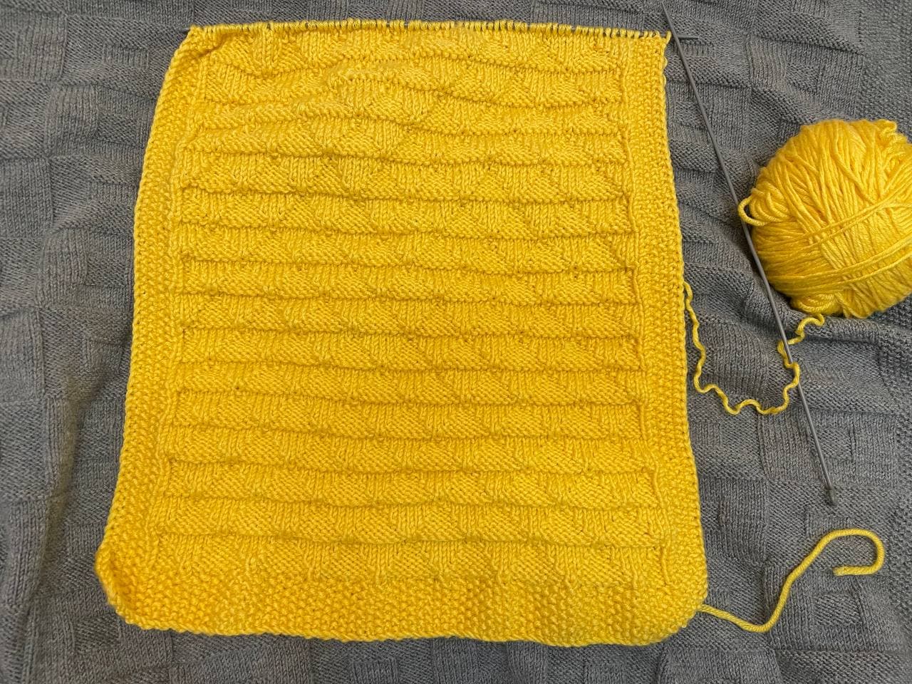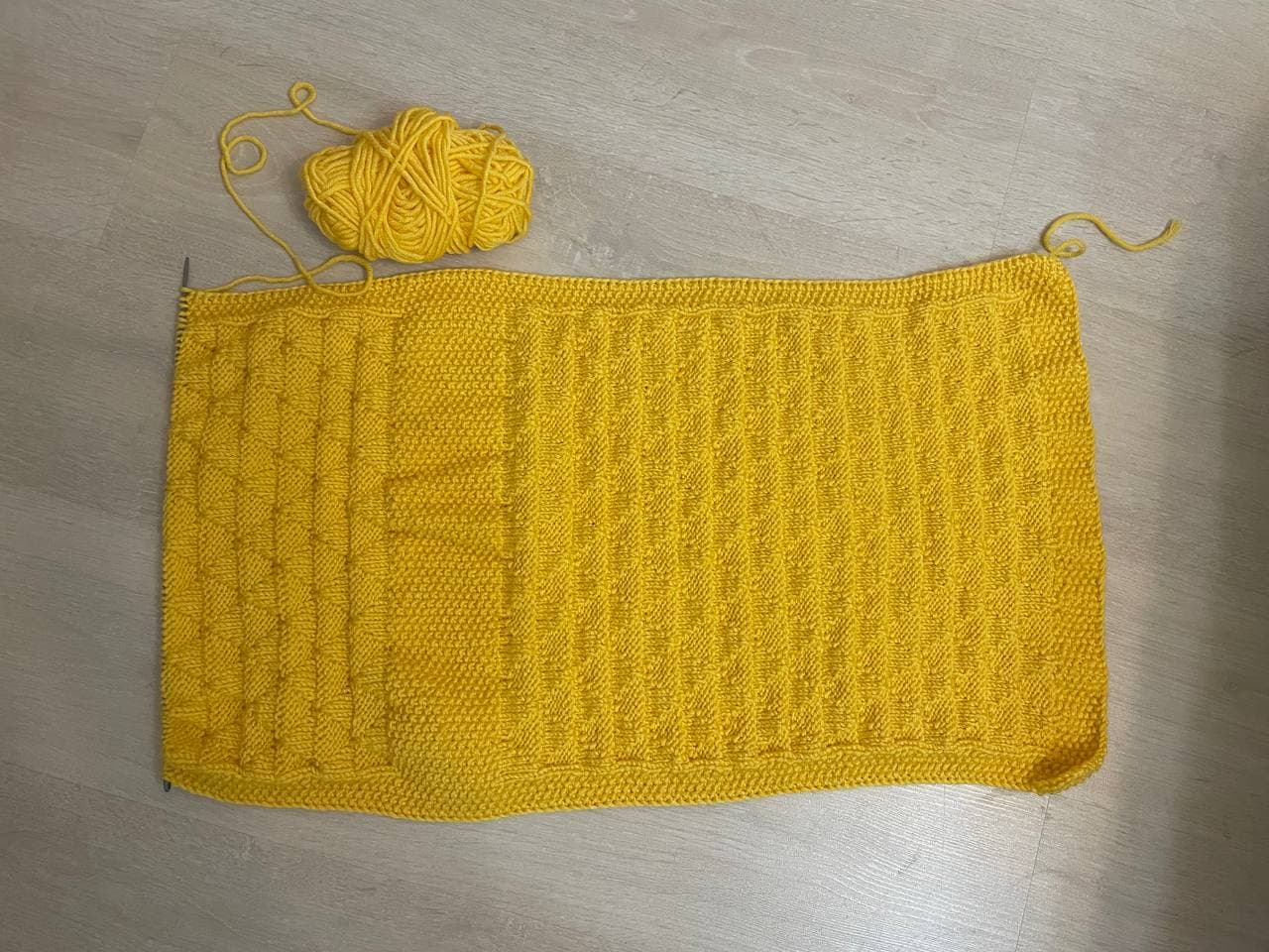 Теперь вязание у нас пойдет столбиками без накида, а в центре сторон постепенно будем добавлять основной узор с рельефным столбиком. Таким образом, углы у нас растянутся и получится более – менее ровная линия, а средняя часть стороны превратится в угол.