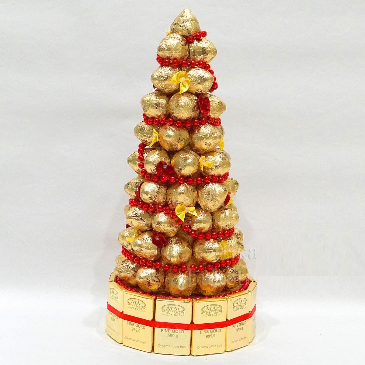 - Елка устанавливается в подставке, украшается шелковистыми лентами.