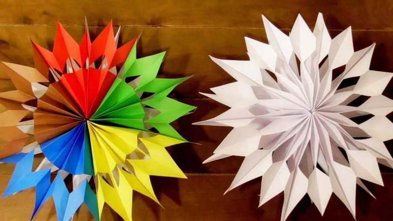 Сложнее обычного оригами считается модульное оригами. Сложите первый модуль по фото-схеме, сделайте их огромное количество и приступайте к сборке по фото мастер-классу. Создание такого шедевра требует много времени и терпения. Также есть огромные достоинства — Вы развиваете мелкую моторику рук и сможете удивить окружающих такой шикарной снежинкой.