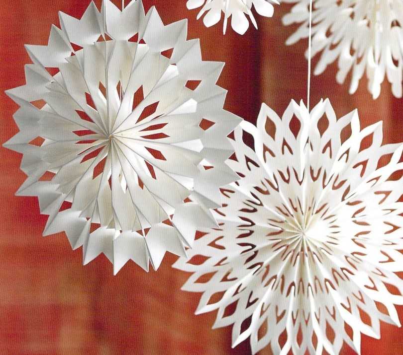 Необычно смотрятся объемные снежинки из бумаги. Вариантов их изготовления придумано много. Самый простой и понятный – гофрированные.