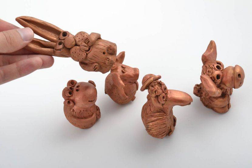 Для работы можно использовать различные инструменты, удобнее всего лопатка. После завершения работы готовую фигуру протирают губкой или мягкой кистью. После чего оставляют сушить в течение 10 дней, а потом обжигают. Готовое изделие декорируют при помощи различных техник: росписи глазурью, оформления цветной глиной, покрытие акриловыми красками и другое.