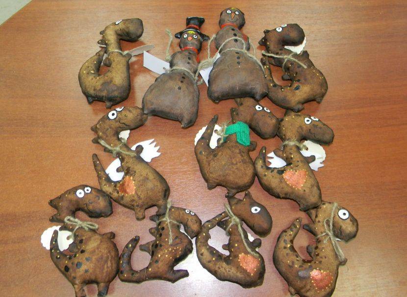 За следующие минут десять девушки сделали на моих восхищенных глазах еще несколько новогодних друзей, и мы выложили все наше искусство на противень. Глина «Сонет», которую предпочитает Ира за ее пластичность, яркость и выгодную стоимость, нуждается в обжиге от трех до десяти минут.