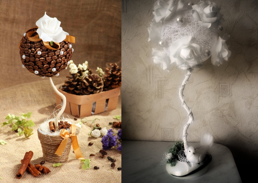 Идей по изготовлению декоративных деревьев настолько много, что перечислить все невозможно. Любая задумка, выполненная аккуратно, будет смотреться как оригинальное изделие.