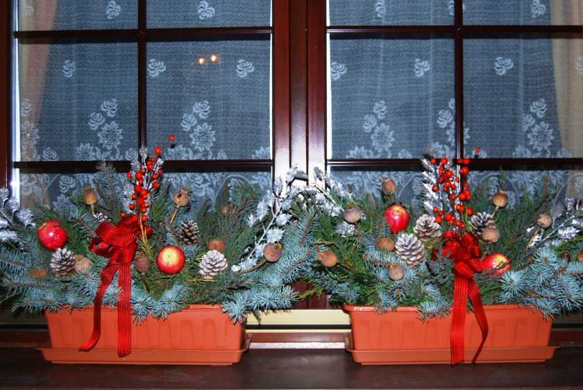Еловые ветки. Еловый венок, как символ Нового года, отлично подойдет, как украшение на дверь, на окно, на стол. Приготовленные ветви разрезаются на мелкие части. Гибкие ветки нужно привязывать к основе с помощью ниток, маленькие веточки лучше посадить на клей. Подумайте, каким будет ваш венок. Для пушистости понадобятся мелкие веточки, расположенные в хаотичном порядке. Для гладкого венка используйте гибкие длинные ветви, расположенные в направлении от центра. Украшениями послужат шишки, ягодки, колокольчики, мелкие елочные игрушки, мишура, бантики и т.д. Старайтесь не использовать более трех цветов, чтобы не перенасытить венок.