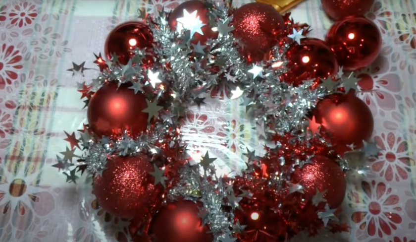 Самый простой венок из мишуры