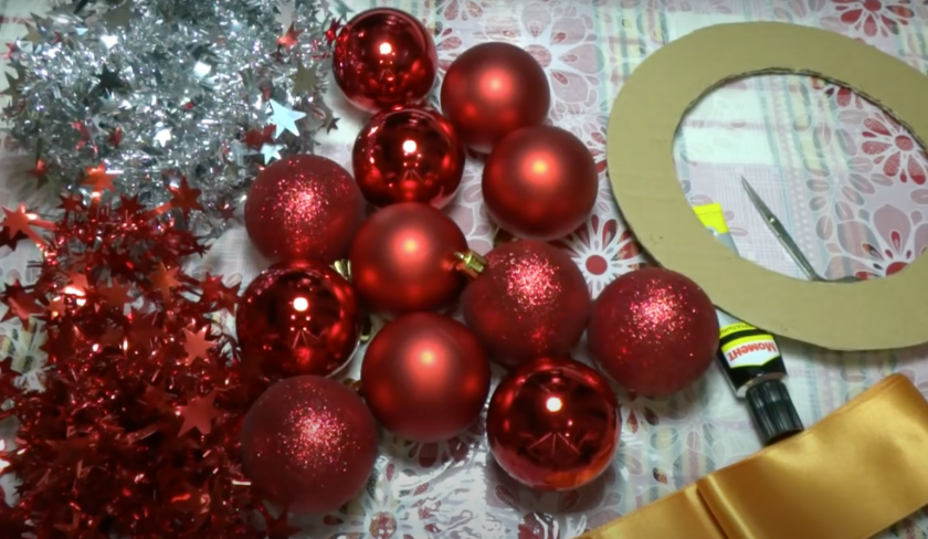 Давайте рассмотрим пошагово, как сделать рождественский венок своими руками из мишуры. У нас получится очень простой в исполнении, но эффектный новогодний декор.