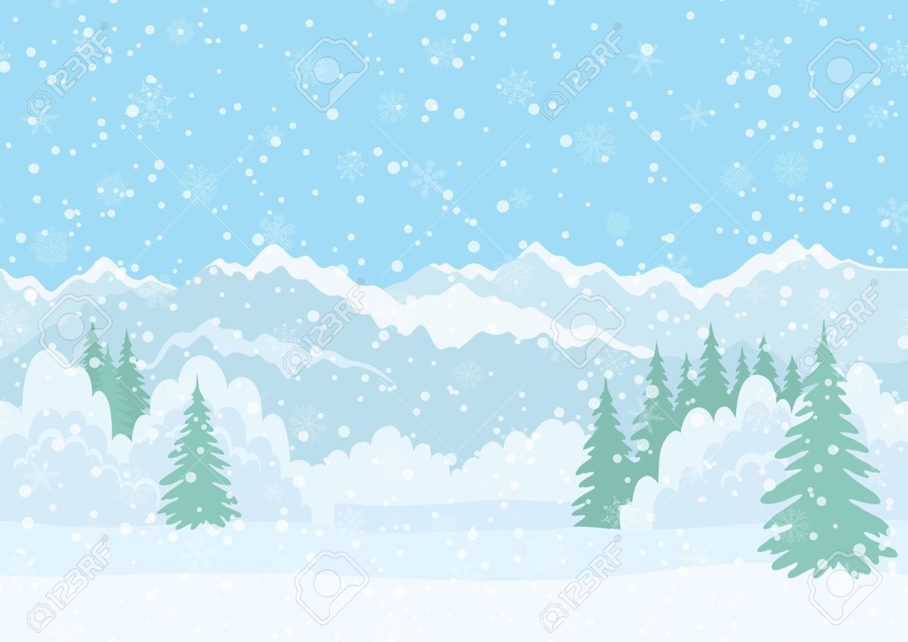 Разделите лист бумаги пополам. На верхней линии поместите две елочки, за ними светло-зеленые березки. Распределите по бокам столько деревьев, сколько считаете нужным. В центре должны быть сугробы. Для этого оставьте пару линий фиолетово-розового цвета, где-то растушуйте голубой.