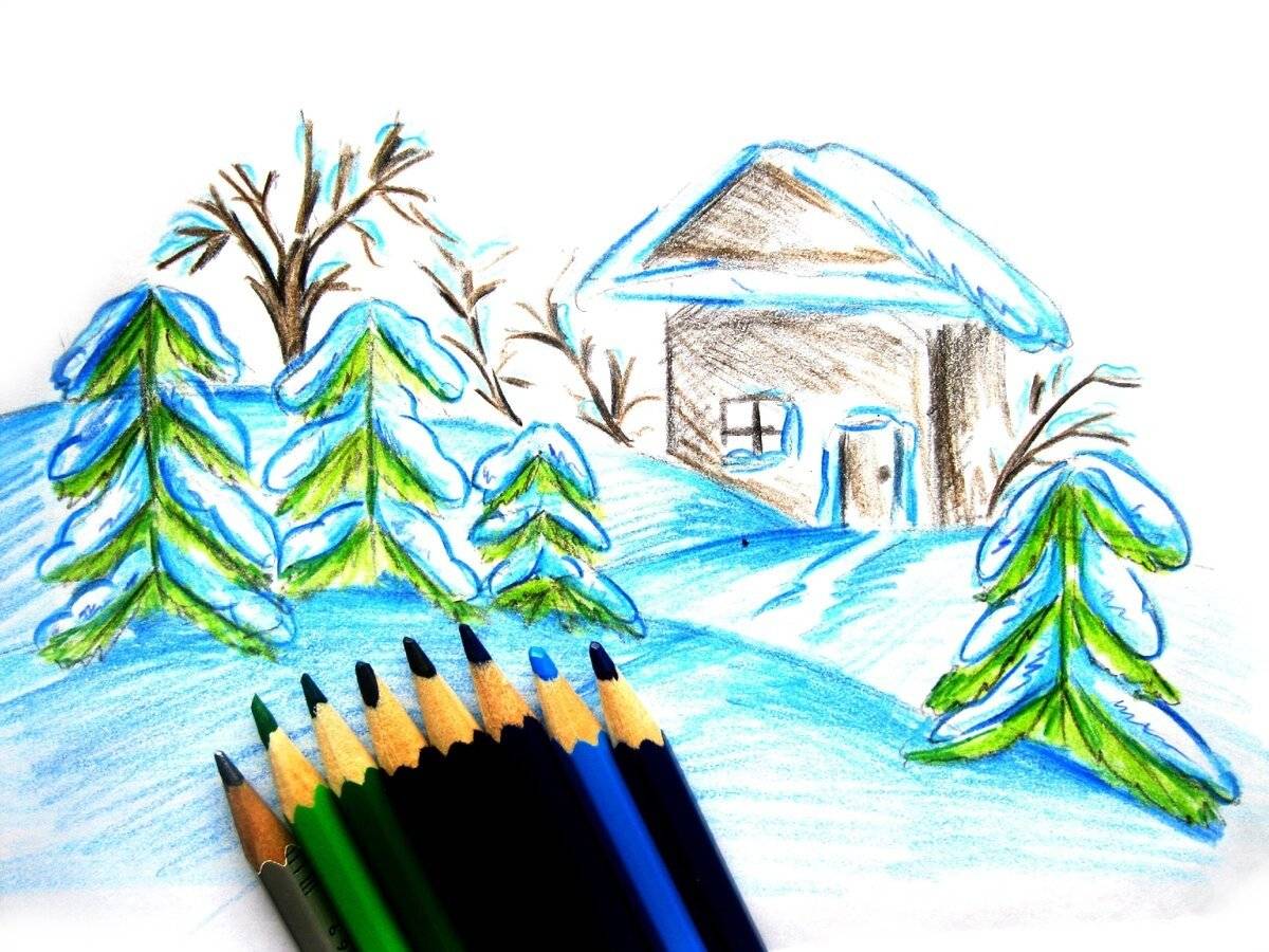 Зимняя тематика – поле для полета фантазии. Можно нарисовать домик в снегу, различные фантазии по этому поводу (снеговик, снежная королева, дед Мороз), детские забавы, сугробы, животные, ассоциирующиеся с этим сезоном, пейзажи (дневной и ночной), речку или озеро со льдом на поверхности.