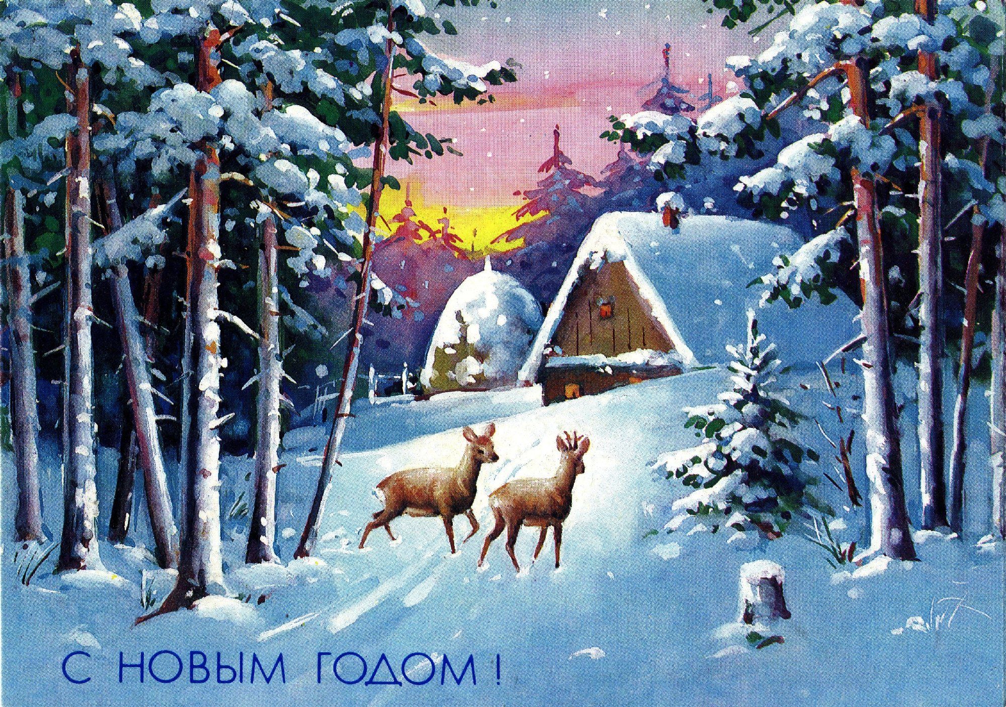 Для новогодней тематики подходят рисунки с изображением Деда мороза, снеговика Олафа и оленей в упряжке. Как правило, такие сказочные персонажи и символы нового года изображены на фоне заснеженной деревни. Вокруг неё находятся лесополоса, проселочная дорога или холмистая местность.