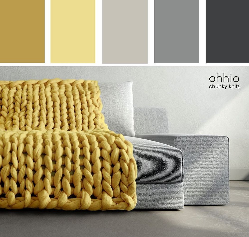 Во-первых, определитесь с необходимым цветом пряжи. Посмотрите на интерьер комнаты, в которую вы планируете определить ваш плед в будущем. Готовое вязаное изделие может гармонировать по цветовой гамме со шторами, подушками или ковром в комнате