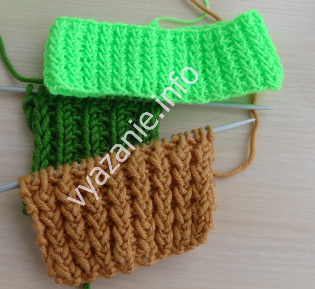 Формируется путем комбинирования двух вязальных техник: обыкновенной резинки и жемчужного паттерна.