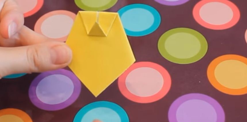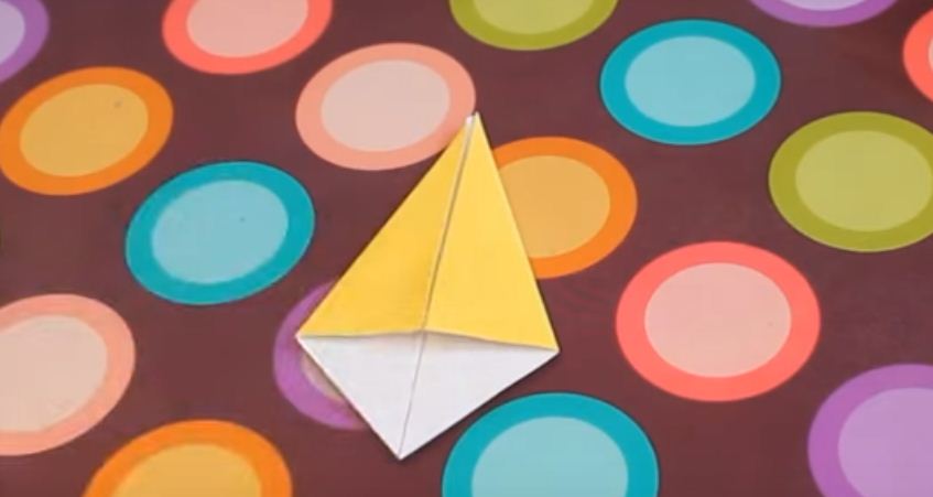 ! Берем желтый квадрат и складываем его треугольником.