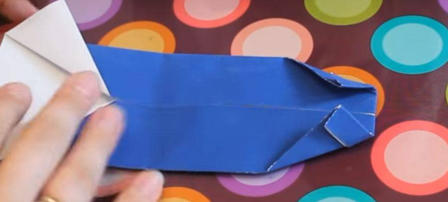 Заново переворачиваем и делаем вот такую застежку, немного согну верх галстука. Загнем вертикальные половины. Все хорошо проклеиваем.
