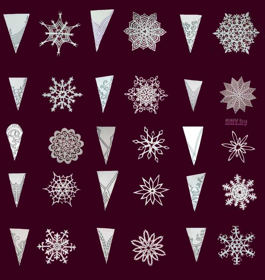 Чем больше складываете лист, тем больше граней у снежинки получите. Если треугольник складывают в два раза, то граней будет 4, если в три – то получите 8 лучиков, а в четыре раза сложенная заготовка дает возможность раскрыть у снежинки целых 12 лучей. Но многое, опять же, будет зависеть от узора. Если его нарисовать таким образом, что средние лучики будут короче, то и снежинка визуально будет казаться с меньшим количеством лучей.