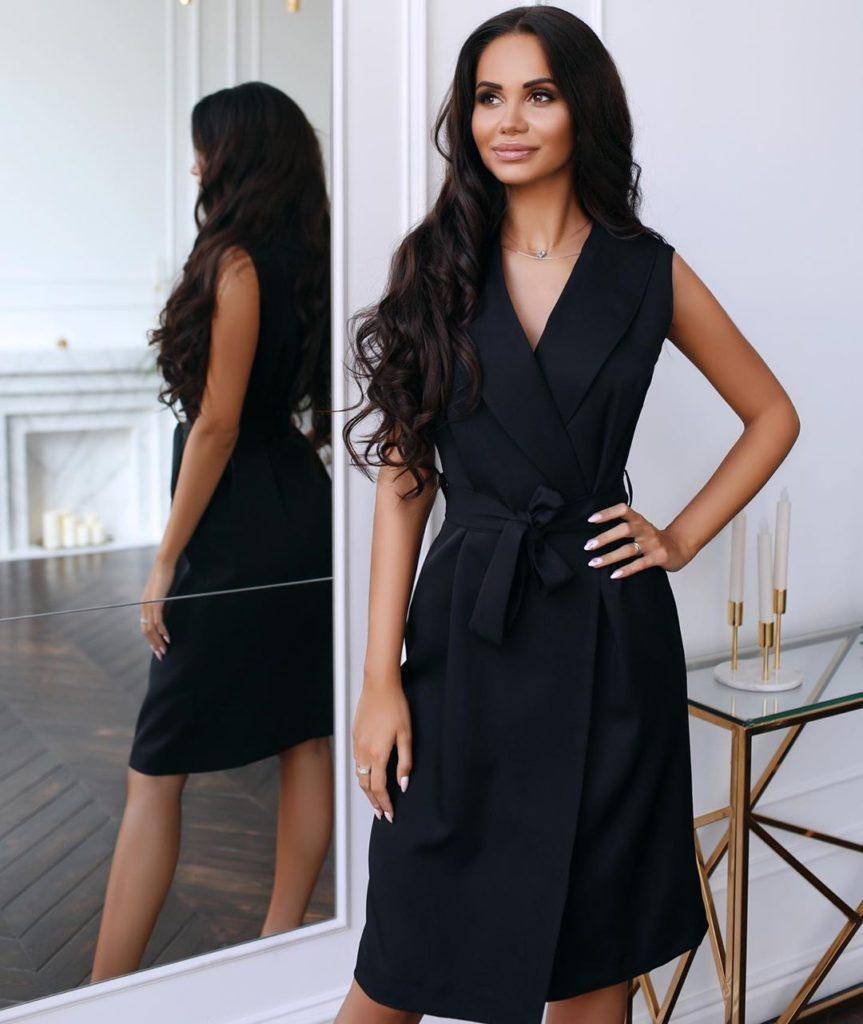 Только стройные девушки с выразительными формами, могут позволить себе трикотажное чёрное платье. Такая модель эффектно подчеркнёт все изгибы фигуры. Платье самодостаточно, и не требует дополнение украшениями. С легкостью подходит для повседневного и вечернего лука. Эффектнее будет смотреться с обувью на высоком каблуке.