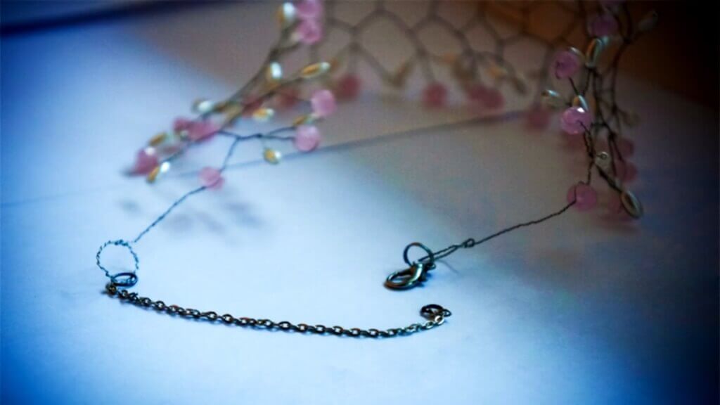Вы можете изменить дизайн, сделать проволочные ячейки поменьше — всё в ваших руках. Сама техника очень простая: берёте большой кусок проволоки, сгибаете его пополам и скручиваете 4 см., затем сгибаете эти 4 см. в колечко, за которое в конце крепится резинка или цепочка.