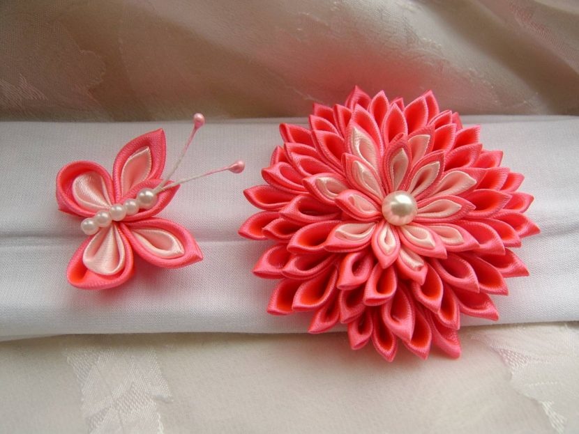 - Ободочки и заколки канзаши. Мастер-класс по этой технике можно найти чуть ниже.